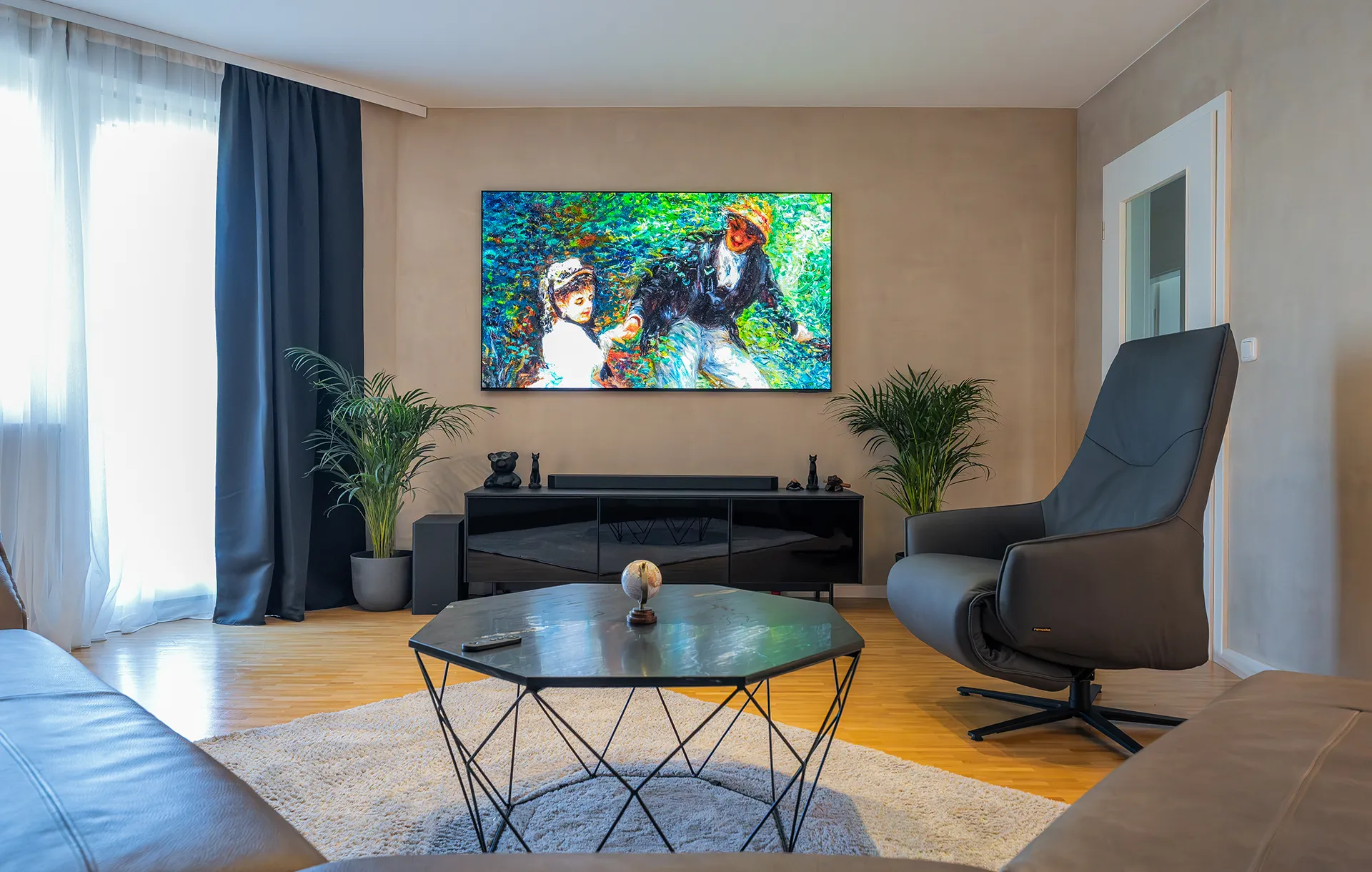 Das Ergebnis ist beeindruckend: Aus dem vormals kühlen Raum ist eine elegante Wohlfühloase entstanden. Die Wände strahlen nun eine edle, natürliche Wärme aus und verleihen dem Wohnzimmer einen einzigartigen Charakter. Der Kunde ist begeistert – sein Wohnzimmer hat sich in einen stilvollen Rückzugsort mit ganz persönlicher Note verwandelt.